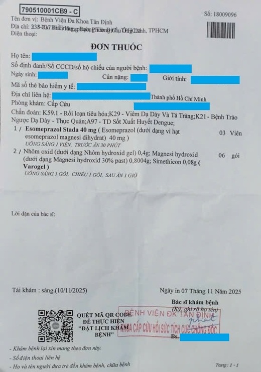 この間、Maruchanはちょっとした“事件”を経験しました。夕食を食べたあとお腹が痛み始め、嘔吐もしました。夜のうちに良くなるかと思っていましたが、翌朝になっても治るどころか、さらに症状が悪化してしまったため、ホーチミン市タンディン総合病院(街区・村レベルの病院で、旧称は1区総合病院)へ向かいました。よくよく思い返すと、前日に冷蔵庫に長く置いていた残り物を食べてしまったことが原因だったのかもしれません。