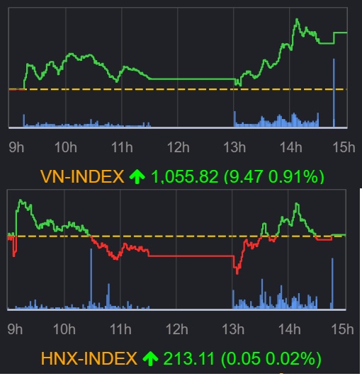 終値 前営業日比 騰落率(%) VN指数 1055.82 +9.47 +0.91 VN30指数 1061.90 +11.75 +1.12 VNMID指数 135...