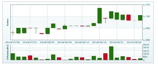 >> 8月26日のラオス総合指数 (2014/08/26)