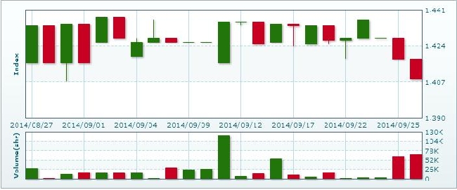 ラオス総合指数1408.37▲9.68ポイント(0.68%)安