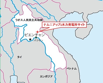 第1ナムニアップ水力発電所は、首都ビエンチャンから北東約150kmの中部ボリカムサイ県ボリカン郡を流れるナムニアップ川に位置する。建設されるダムの高さは148m、堤頂長530mで、出力約27万kW規模の発電所となる。完成後、発電した電力の大半を27年間にわたりタイ電力公社(EGAT)に売電し、一部をラオス電力公社に供給する。