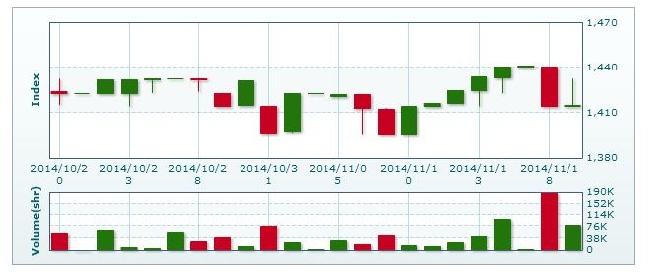 >> 11月18日のラオス総合指数 (2014/11/18)