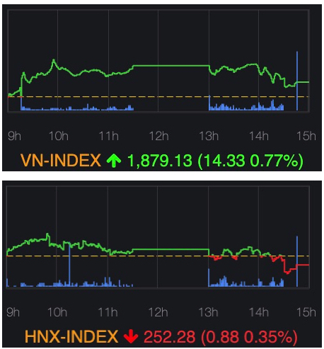 ホーチミン市場は1875.14 (+0.55%)で寄り付いた後、買いが先行し、前場の中盤に一時1901.22 (+1.95%)まで上昇した。その後は売りが入ったことで後場にかけてもみ合いながら値を消し上げ幅を縮小する展開となり、VNインデックスは+14.33ポイント(+0.77%)高の1879.13で引けた。