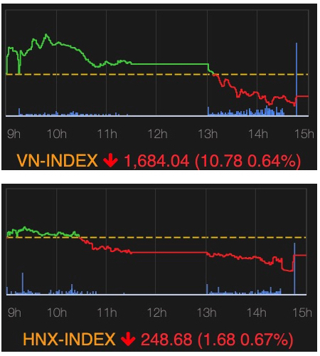 ホーチミン証券取引所(HSX)のVNインデックスは前日比▲10.78ポイント(▲0.64%)下落し、1684.04ポイントで引けた。ハノイ証券取引所(HNX)のHNXインデックスも同▲1.68ポイント(▲0.67%)下落し、248.68ポイントとなった。売買代金は、HSXが21兆1289億VND(約1280億円)、HNXが1兆1247億VND(約68億円)となり、前日から減少した。原油価格の急激な変動がインフレや経済成長への圧力となり、投資家心理を慎重にさせている。