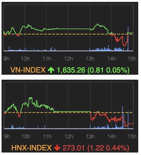 ホーチミン市場は1635.12 (+0.04%)で寄り付いた後、一時値を上げた。その後は前引けにかけて主にプラス圏でもみ合う状態が...