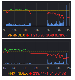 終値 前営業日比 騰落率(%) VN指数 1210.95 -9.48 -0.78 VN30指数 1210.80 -10.52 -0.86 ...