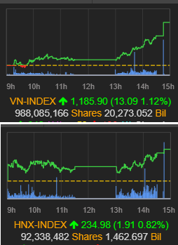 終値 前営業日比 騰落率(%) VN指数 1185.90 +13.09 +1.12 VN30指数 1186.60 +18.34 +1.57 ...