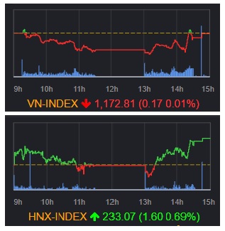 終値 前営業日比 騰落率(%) VN指数 1172.81 -0.17 -0.01 VN30指数 1168.26 +3.07 +0.26 ...