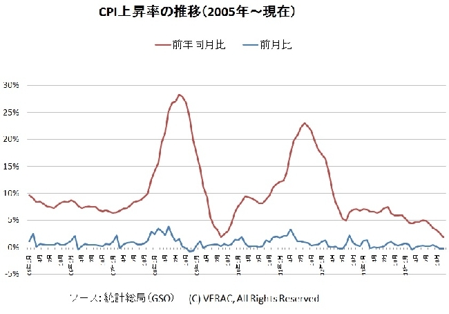 統計総局によると、2014年12月の全国消費者 物価指数(CPI)は、前月比で▲0.24%低下した。前年同月比では+1.84%の上昇で、過去11年間で最も低い水準となっている。原油価格の下落を受けてガソリン価格が連続して引き下げられており、今月のCPIに大きく影響した。前月比CPIがマイナスとなるのは、3月の前月比▲0.44%、11月の前月比▲0.27%に続く今年3 回目。また、2014年通年の全国CPIは前年比+4.09で、こちらも2003年の同+3.18%以来の最低値となっている。...