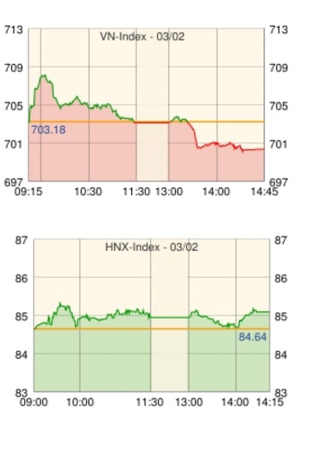 | VN指数 | 700.35 | -2.83 | -0.40 |