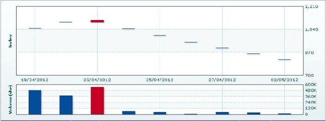 5月3日のCSXインデックスは37.63ポイント(4.6%)下落し、779.57で取引を終えた。売買高は前日比53.1%増の2万6171株、売買代金は同46.0%増の1億8974万KHRだった。