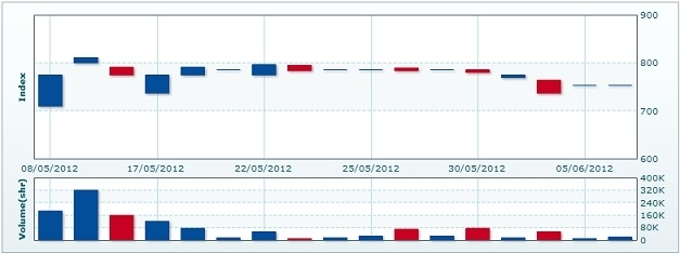 6月7日のCSXインデックスは5.38ポイント(0.71%)下落し、747.31で取引を終えた。売買高は前日比32.4%減の1万2317株、売買代金は同32.8%減の8573万KHRだった。