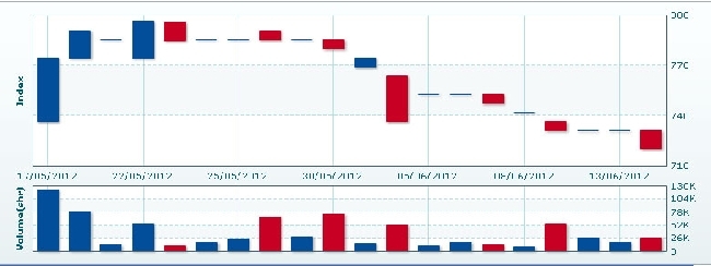 CSXインデックスは今週32.26ポイント下落した。月曜日から金曜日までの5営業日を合計した売買高は18万0125株、売買代金は12億1241万キープだった。1営業日当たりの売買高は3万6025株、1営業日当たりの売買代金は2億4248万キープだった。