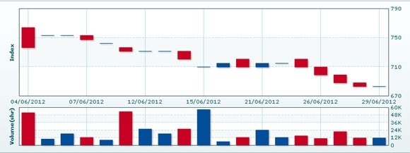 7月2日のCSXインデックスは5.37ポイント(0.79%)上昇し、688.17で取引を終えた。売買高は先週末比80.5%減の2259株、売買代金は同80.4%減の1448万KHRだった。