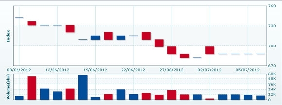7月9日のCSXインデックスは5.37ポイント(0.78%)下落し、682.80で取引を終えた。売買高は先週末比47.5%増の1万3266株、売買代金は同46.8%増の8445万KHRだった。