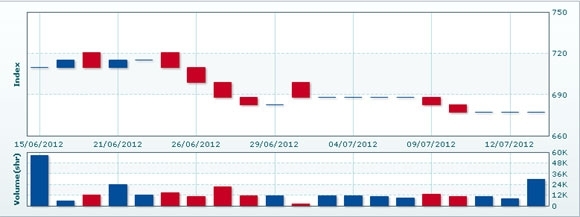 7月16日のCSXインデックスは先週末比変わらずの677.42で取引を終えた。売買高は先週末比▲28.9%減の2万1598株、売買代金は同▲28.88%減の1億3607万KHRだった。