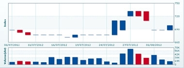 8月6日のCSXインデックスは先週末比変わらずの698.92で取引を終えた。売買高は先週末比+23.0%増の1万5200株、売買代金は同+23.0%増の9880万KHRだった。