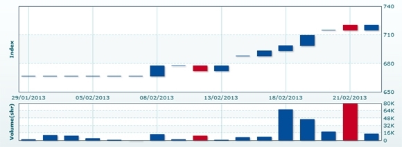ベトナム株情報 > ベト株ニュース > カンボジア株 > 2/26:CSXインデックスは先週末比▲0.75%安の715.05