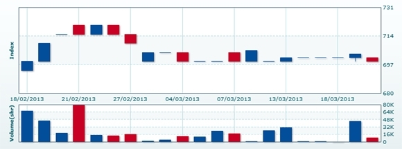 ベトナム株情報 > ベト株ニュース > カンボジア株 > 3/20:CSXインデックスは前日比▲0.61%安の698.92