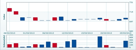 ベトナム株情報 > ベト株ニュース > カンボジア株 > 3/26:CSXインデックスは前日比▲0.31%安の701.08