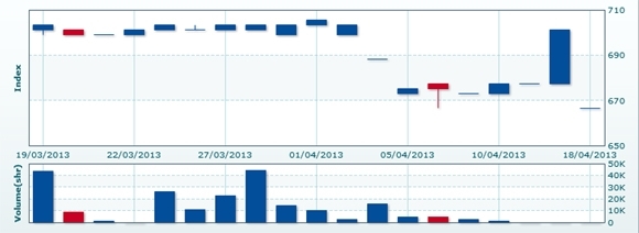 ベトナム株情報 > ベト株ニュース > カンボジア株 > 4/18:CSXインデックスは先週末比▲4.91%安の666.67