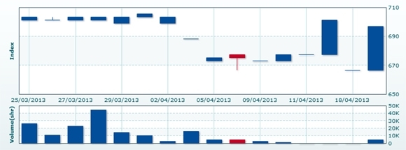ベトナム株情報 > ベト株ニュース > カンボジア株 > 4/19:CSXインデックスは前日比+4.51%高の696.77