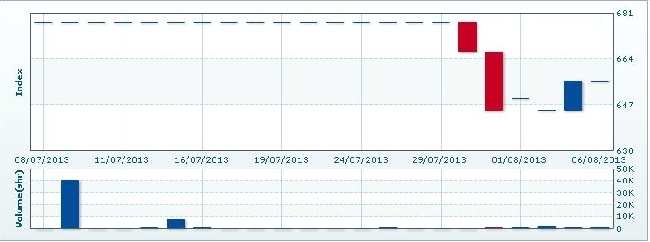 >> 8月5日のカンボジア総合指数 (2013/08/05)