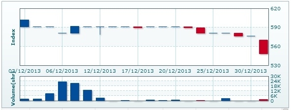 | カンボジア総合指数 | 548.39 | ▲27.95ポイント(4.85%)安 |