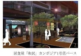 ワタミによると、「和民」1号店は、今年6月にオープン予定の「イオンモールプノンペン」に出店。グランドフロアに位置するオープンカフェゾーンの86坪を使用し、142席規模になるという。