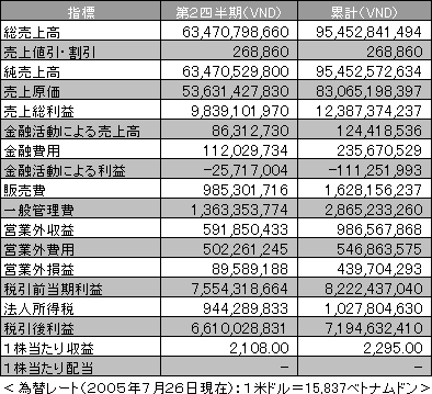 カインホイ株式会社(カホメックス、KHAHOMEX)[銘柄コード:KHA]はこのほど、2005年第2四半期の業績を発表した。詳細は次の通り: