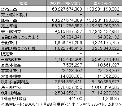チャウトイ・コンクリート株式会社[銘柄コード:BT6]はこのほど、2005年第2四半期の業績を発表した。詳細は次の通り: