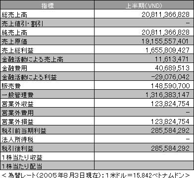 ベトナム株情報 > ベト株ニュース > ホーチミン証取 > BTC:ビンチェウ建設工業株式会社の2005年上半期業績発表