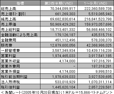 ベトナム株情報 > ベト株ニュース > ホーチミン証取 > TRI:2005年第3四半期業績発表