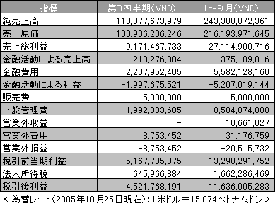 ベトナム株情報 > ベト株ニュース > ホーチミン証取 > BT6:2005年第3四半期業績発表