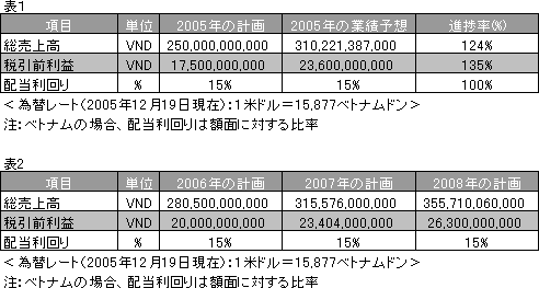 チャウトイ・コンクリート株式会社[銘柄コード:BT6]はこのほど、2005年の事業状況及び2006年の計画を発表した。詳細は次の通り:
