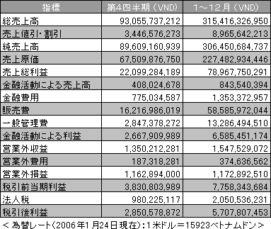 チベコ飲料株式会社(チベコ、TRIBECO)[銘柄コード:TRI]はこのほど、2005年第4四半期の業績を発表した。詳細は次の通り: