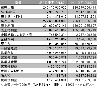 ベトナム株情報 > ベト株ニュース > ホーチミン証取 > AGF:2005年第4四半期業績発表