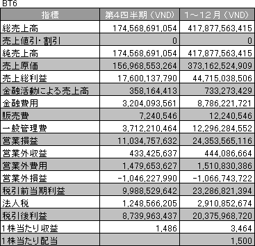 チャウトイ・コンクリート株式会社[銘柄コード:BT6]はこのほど、2005年第4四半期の業績を発表した。詳細は次の通り: