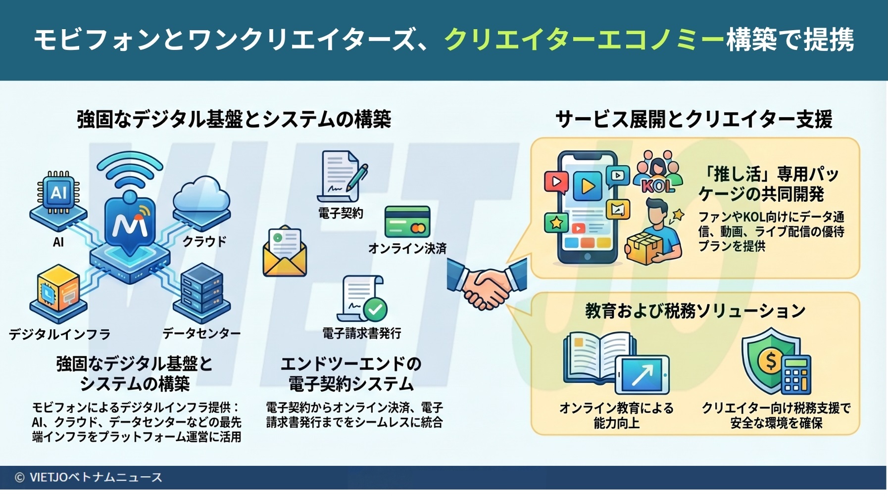 今回の提携は、両社が先駆けてベトナムにおけるデジタルトランスフォーメーション(DX)と持続可能なデジタル経済の発展を促進し、包括的なクリエイターエコノミーを構築する機会を開くものと期待される。