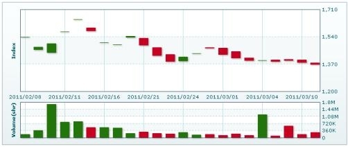 11日のラオス総合指数(LSX総合指数)は11.87ポイント(0.86%)下落し、1368.68で取引を終えた。売買高は前日比53%増の25万9468株、売買代金は前日比45%増の17億7000万キープだった。ラオス総合指数は先週末比1.73%下落した。11日付べトストックが報じた。