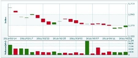 16日のラオス総合指数(LSX総合指数)は 28.66 ポイント(2.14%)上昇し、1365.56で取引を終えた。売買高は前日比14%増の22万5031 株、売買代金は同 14%増の16億6000万キープだった。16日付べトストックが報じた。