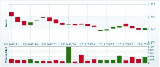 23日のラオス総合指数(LSX総合指数)は 12.35ポイント(0.92%)上昇し、1348.41で取引を終えた。売買高は前日比50%増の44万6965株、売買代金は同 50%増の30億9000万キープだった。23日付べトストックが報じた。