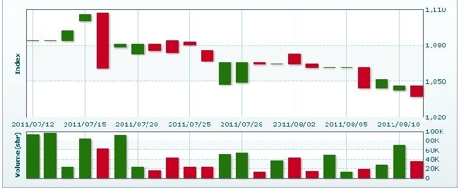 8月12日のラオス総合指数は前日比変わらずの1037.63で取引を終えた。売買高は前日比32.5%減の2万4202株、売買代金は同31.2%増の1億3326万キープだった。