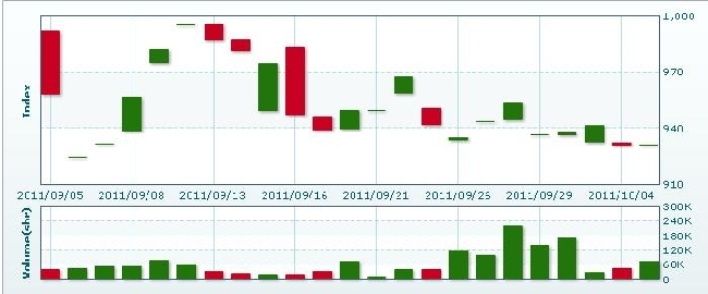 10月6日のラオス総合指数は1.1ポイント(0.12%)上昇し、932.49で取引を終えた。売買高は前日比64.7%減の2万6810株、売買代金は同67.0%減の1億2325万キープだった。