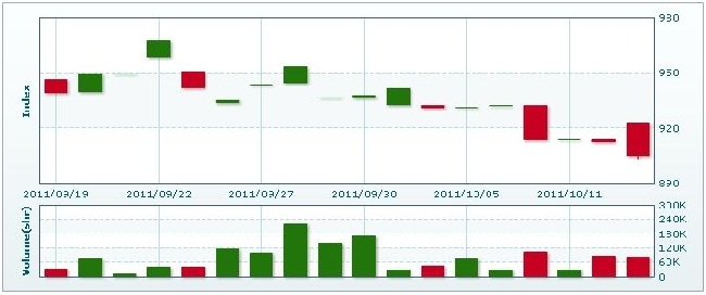 10月19日のラオス総合指数は1.10ポイント(0.12%)下落し、903.89で取引を終えた。売買高は前日比46.4%減の4万4855株、売買代金は同45.8%減の2億2382万キープだった。