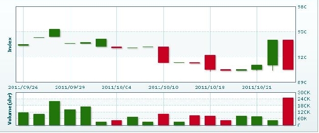 10月26日のラオス総合指数は8.79ポイント(0.97%)下落し、896.2で取引を終えた。売買高は前日比20.5%減の19万8129株、売買代金は同16.2%減の13億7904万キープだった。