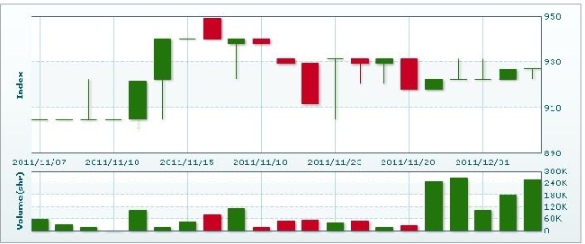 12月7日のラオス総合指数は前日比変わらずの927.01で取引を終えた。売買高は前日比89.8%減の2万6500株、売買代金は同92.5%減の1億1395万キープだった。