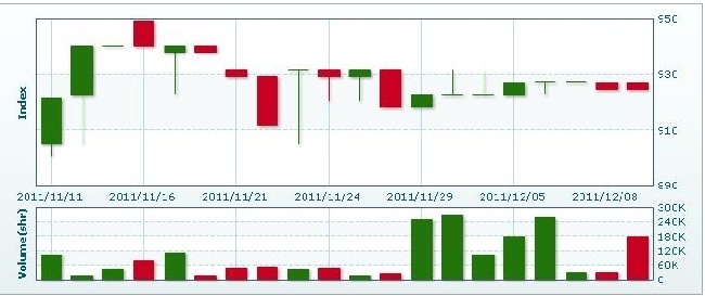 12月12日のラオス総合指数は2.21ポイント(0.24%)下落し、 922.59で取引を終えた。売買高は先週末比45.7%増の26万0259株、売買代金は同103.6%増の18億0724万キープだった。