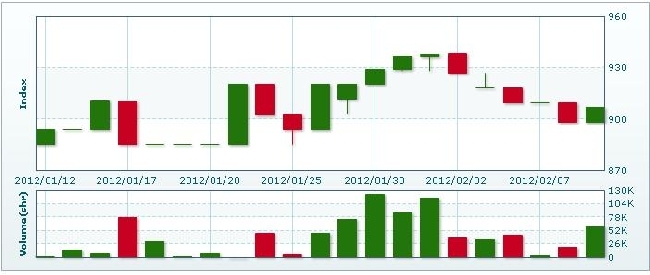 2月10日ラオス総合指数は6.59ポイント(0.73%)上昇し、913.68で取引を終えた。売買高は前日比51.1%減の2万9394株、売買代金は同49.2%減の1億3173万キープだった。