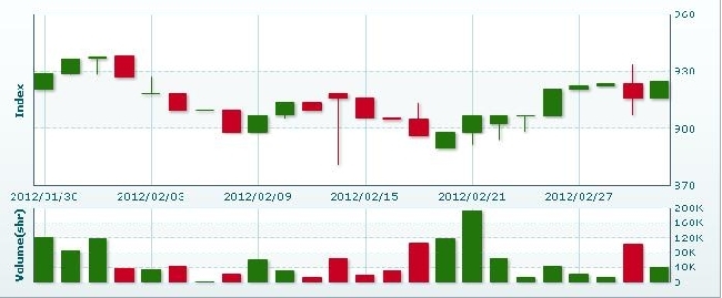 3月1日のラオス総合指数は8.79ポイント(0.96%)上昇し、924.63で取引を終えた。売買高は前日比61.1%減の4万0121株、売買代金は同57.2%減の2億1881万キープだった。